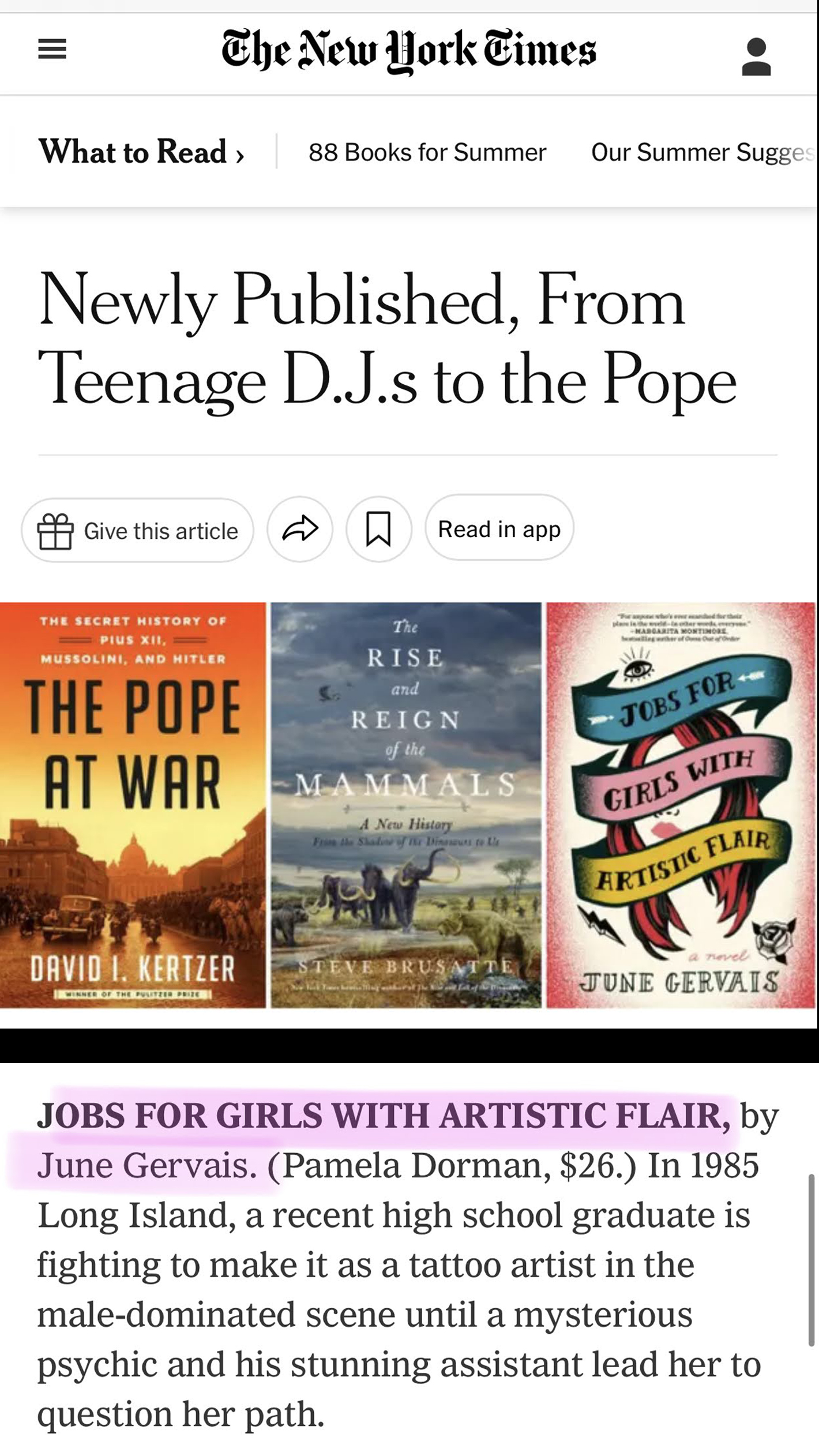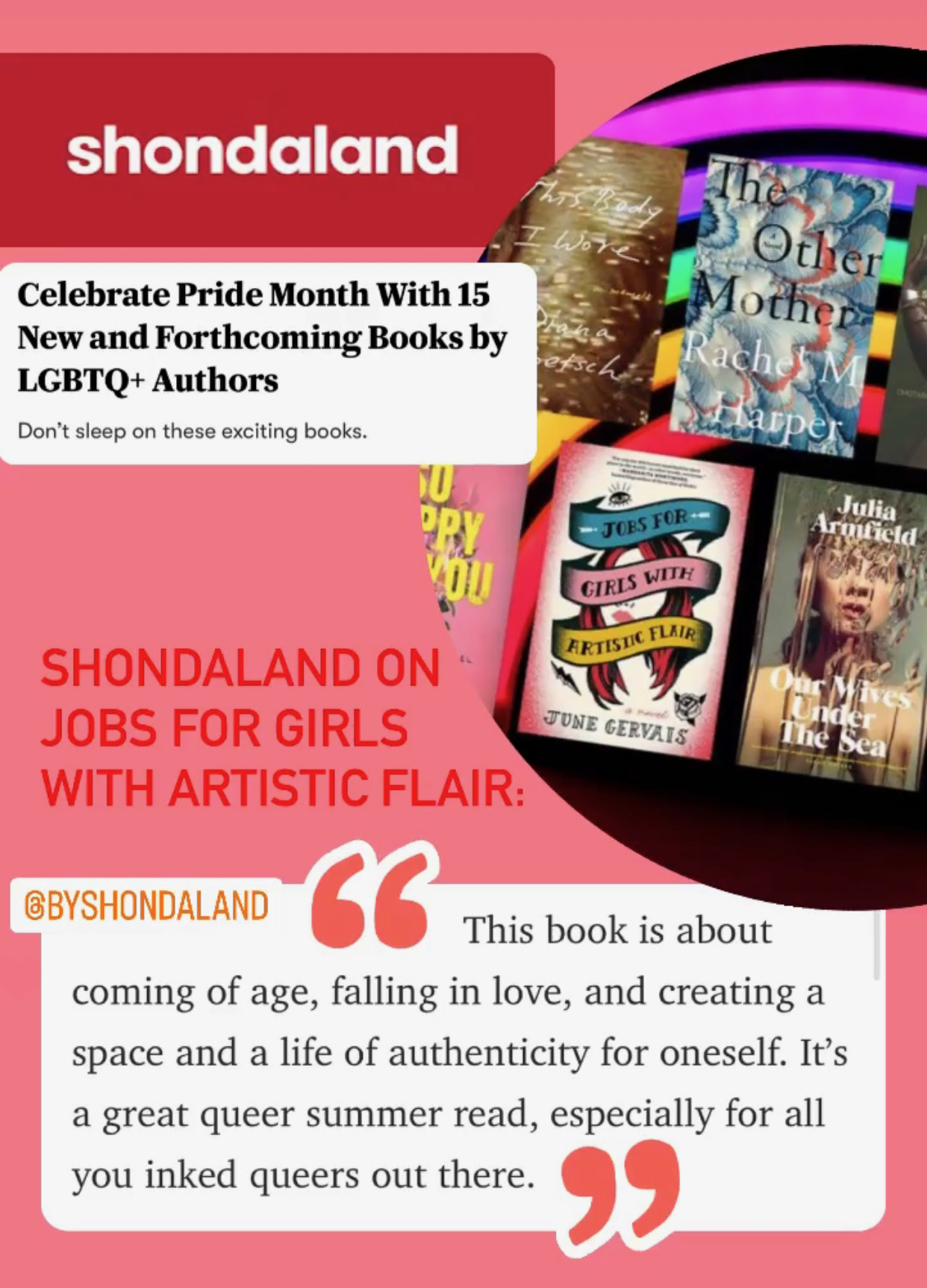 “As if a queer, feminist, 80s coming-of-age novel weren’t enough, Jobs for Girls With Artistic Flair also introduces us to a host of interesting characters in all the shades of gray, a gathering storm of family drama, and a burgeoning tattoo scene I knew nothing about and was delighted to be (pun intended) drawn into.”